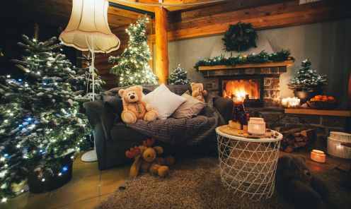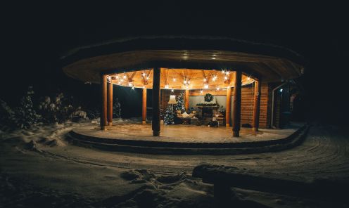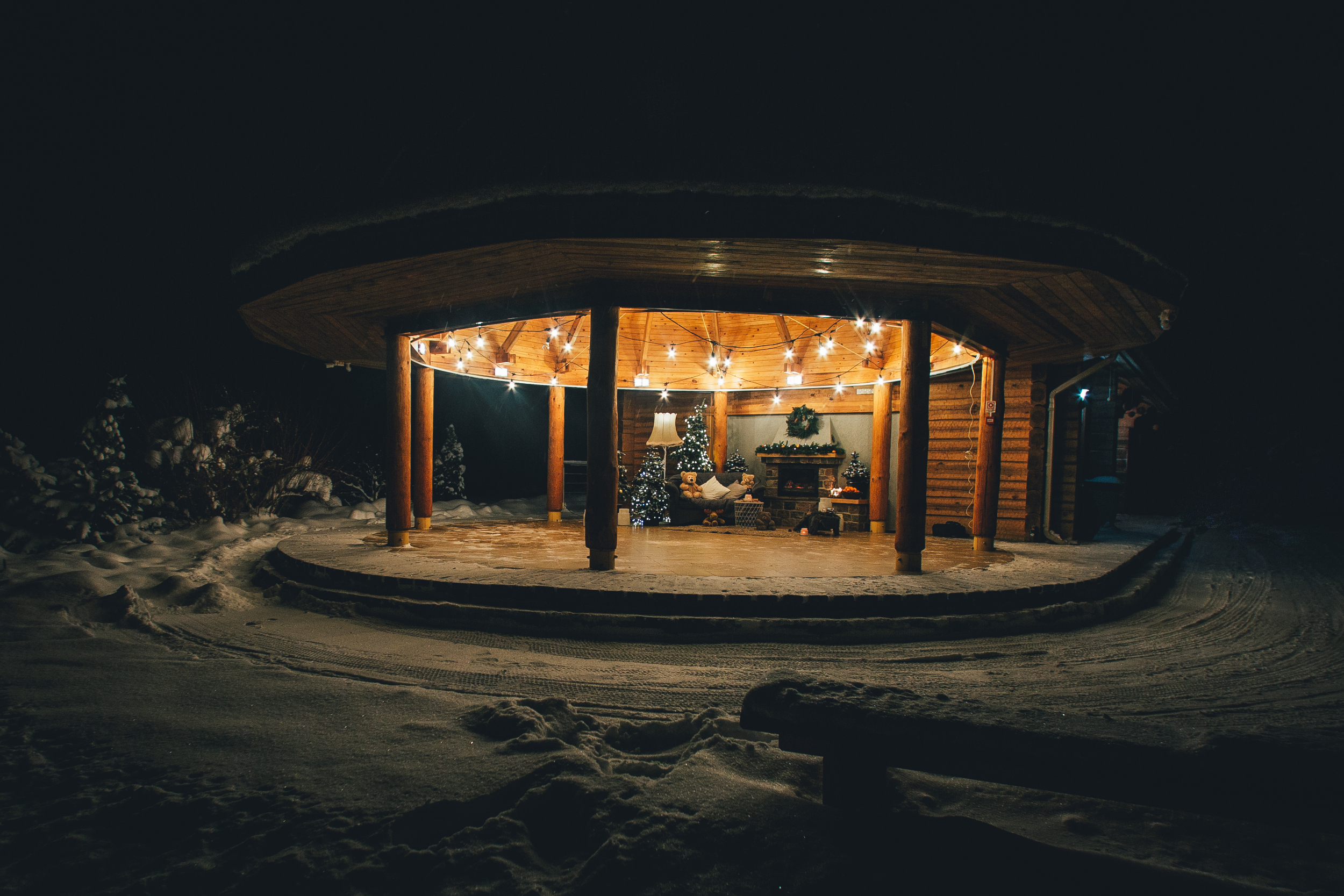 Mazajā arborētuma meža pasaku namiņā gaisā jaušama svinīga noskaņa. Iekurts kamīns, telpu rotā svētku apgaismojums, servēts ābolu un mandarīnu trauks. Lāču paps un citi meža iemītnieki gaida ciemiņus. Arborētuma āra viesistabā ieplūdusi mājīga atmosfēra, kur tapt ģimeniskiem, draudzīgiem, sirsnīgiem, svētku sajūtu pilniem foto par atmiņu no šiem Ziemassvētkiem. Iespējams, lāču ģimenes viesistabā varam satikties kopīgos ģimenes svētkos?