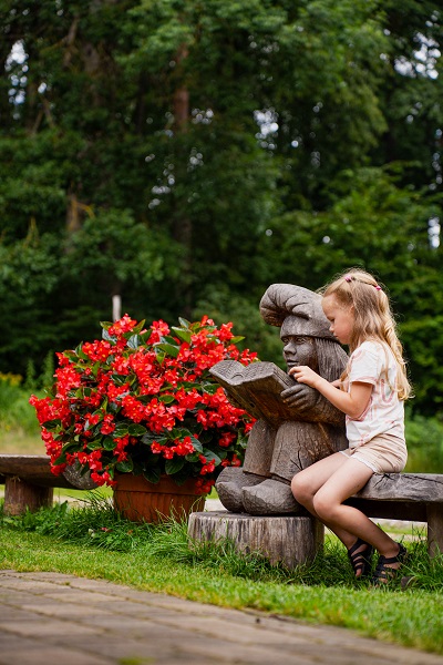 Dabas parka teritorijā, kas plešas 400 ha platībā, var doties nesteidzīgās pastaigās, izzināt meža gudrības, apskatīt kokā veidotas skulptūras un satikt dzīvos pasaku tēlus.