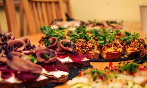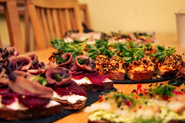 Pirms došanās uz virtuvi viesi pulcējas pie lielā svētku galda, lai iepazītos un piedzīvotu nelielu garšu degustāciju, kas ļauj atvērt savas garšas kārpiņas un palīdz gatavošanas procesu padarīt radošāku. Karīna vienmēr degustāciju galdam ir atradusi ko interesantu no vietējo ražotāju sortimenta, apvienojot dažādas garšu nianses un faktūras.