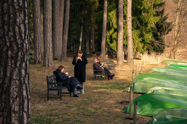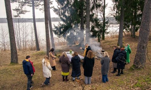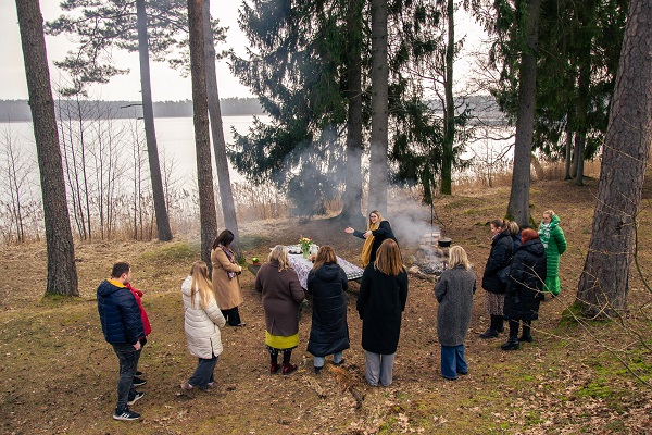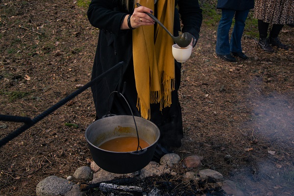 Pirms gatavošanas “Spārē” Karīna savus viesus sagaida pie Gulbju ezera, kur jau uz ugunskura ir uzvārīta tēja, ko baudot var ieklausīties priežu meža apkārtnes skaņās un ieelpot atspirdzinošo ezera gaisu. Lai izbaudītu gatavošanas procesu, vispirms ir jāapstājas un jāatiet no ikdienas rutīnas skrējiena.