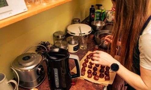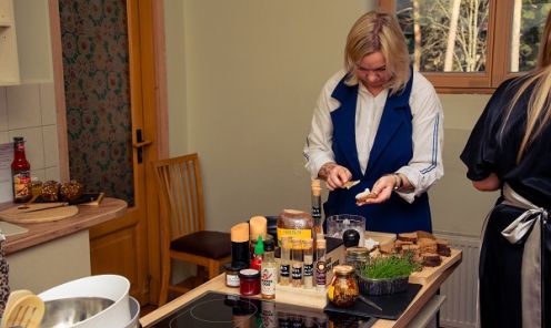 ““Klātbūtnes garša” ir unikāls projekts, kurā apvienota gandrīz četru gadu pieredze viesu uzņemšanā mājas kafejnīcās, savā ēdināšanas busiņā, gatavojot draugu viesībām un veidojot saturu savam @es.gatavoju blogam. Tā ir iespēja ikvienam piedzīvot gatavošanas procesu, liekot lietā visas piecas maņas — ieklausīties, vērot, sasmaržot, sajust un izgaršot. Viesiem 3 stundu laikā ir iespēja gatavot uzkodas vai 3 kārtu maltīti no ikdienā labi zināmiem un arī vietējo mājražotāju produktiem,” stāsta Karīna.
