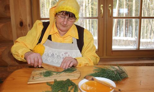Ja esi uzņēmīgs un nedaudz vēlies “paburties” virtuvē, izmanto Latvijas valsts mežu dabas parka Tērvetē Rūķu saimes īpaši sagatavotās meža labumu receptes. Viens no rūķu Meža aptieciņas dārgumiem ir priežu un egļu skujas.