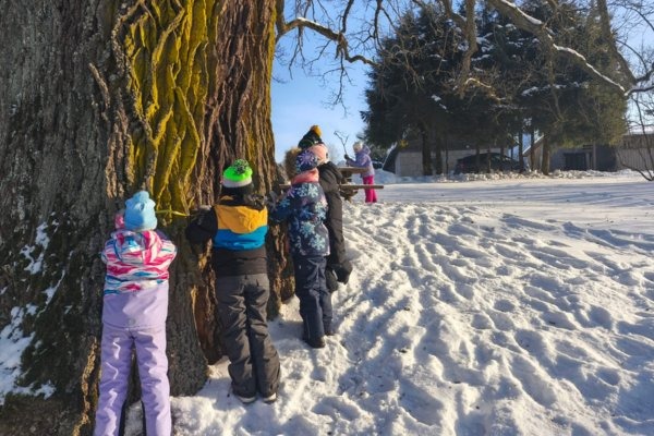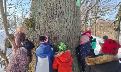 Mums ir paveicies, ka netālu no bērnudārza aug dižkoks, pie kura dodamies visos gadalaikos. Šoreiz tas bija īpašs piedzīvojums – mērīt tā garumu un apkārtmēru.