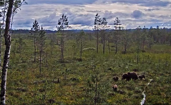 AS “Latvijas valsts meži” (LVM) purva tiešsaistes kamerā, kur redzams klinšu ērgļu ligzdošanas biotops, 12. jūnijā tika novērots unikāls skats – purvu šķērsoja brūnā lāča...
