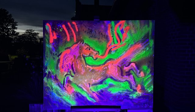 Jaunmoku pils teritorijā naktī apskatāma luminiscējošu gleznu izstāde