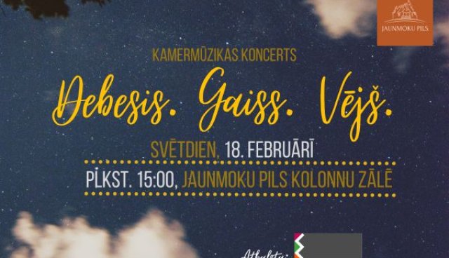 Jaunmoku pilī 18. februārī plkst. 15:00 notiks kamermūzikas koncerts "Debesis. Gaiss. Vējš." Uz skatuves satikties Trio Spectrum – dziedātāja Agnese Pauniņa, flautiste Liene...