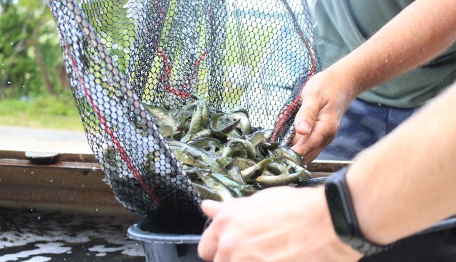 On May 1, the fishing season starts again in LVM (“Latvia's State Forests”) Tērvete reservoir. In anticipation of the new season, on April 28, fish resources were replenished in the reservoir - 800 kg of carp gills were collected in the reservoir. The average weight of the fish is 0.8 - 1 kg.