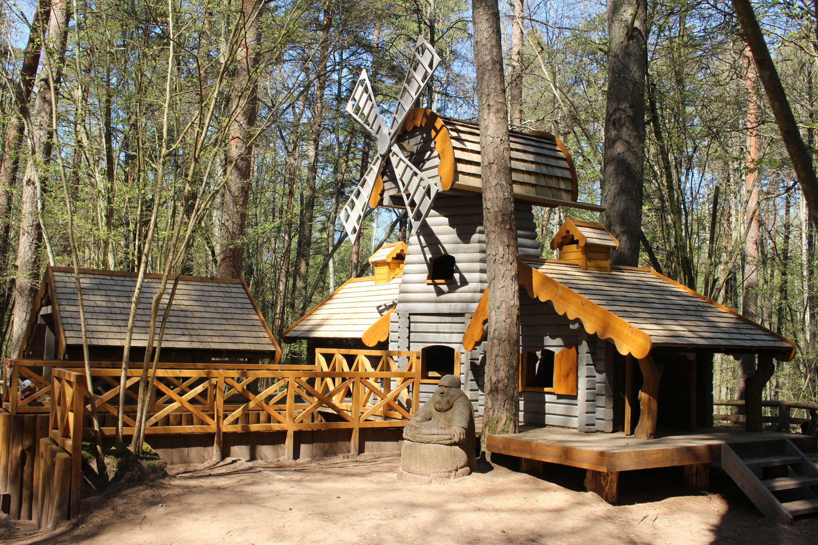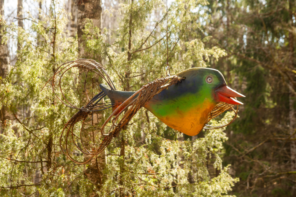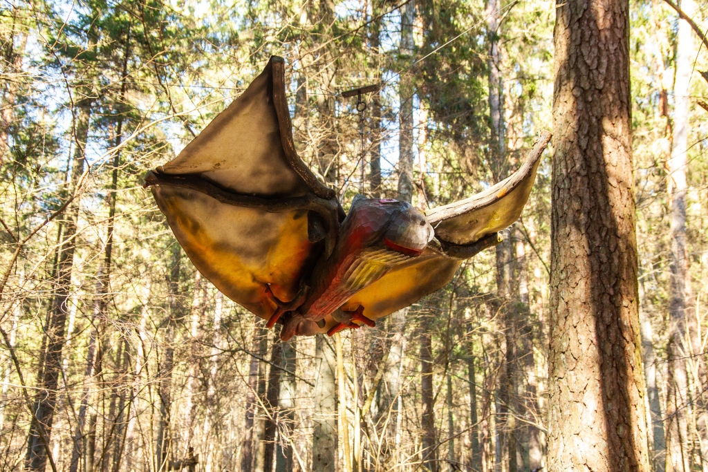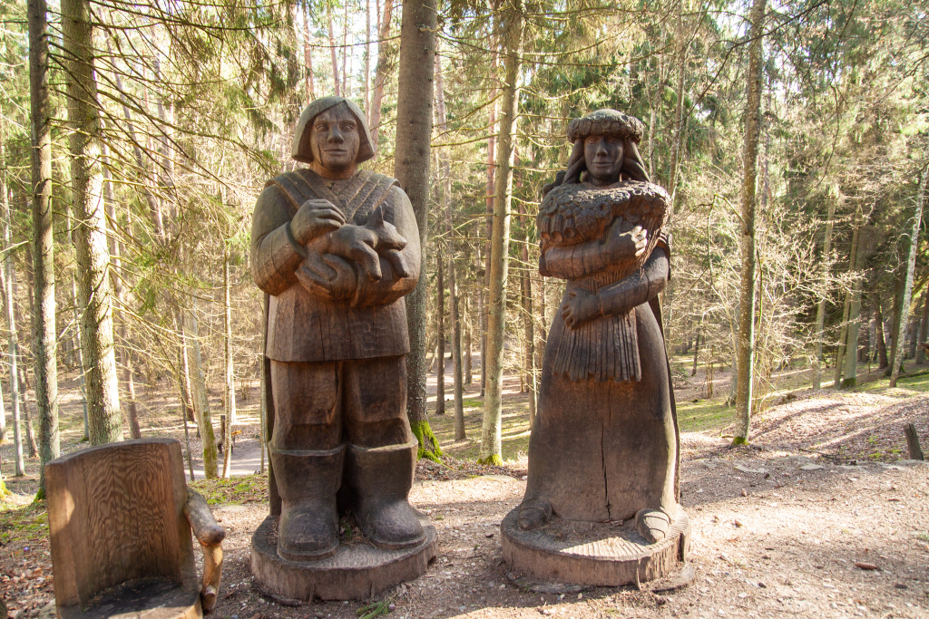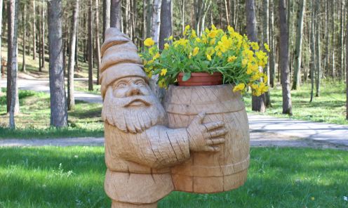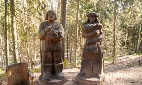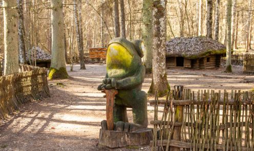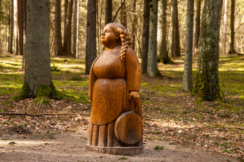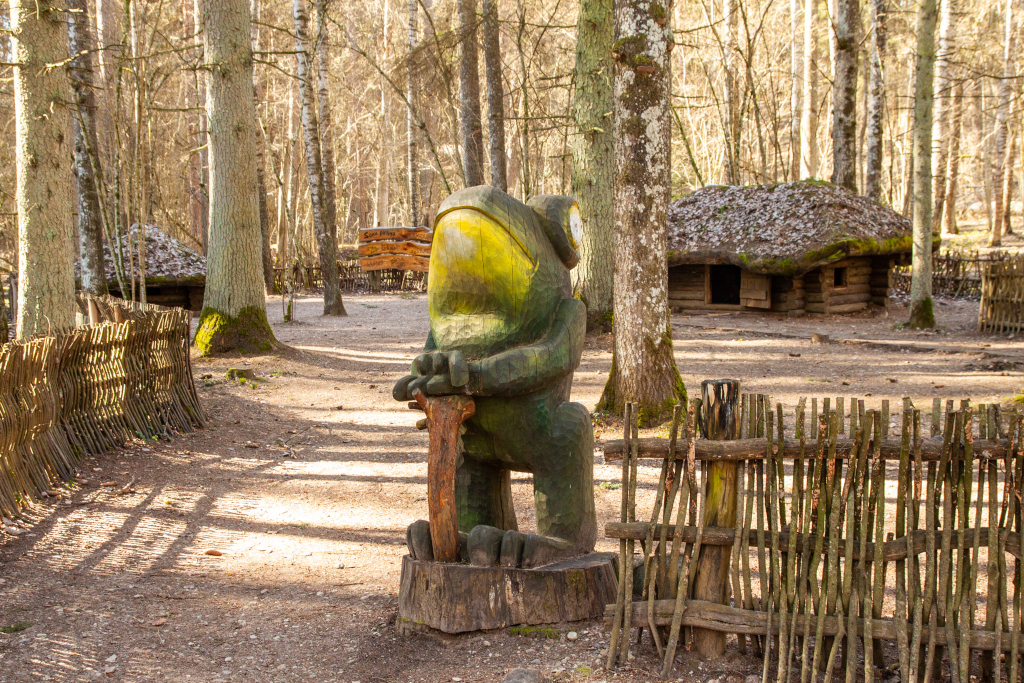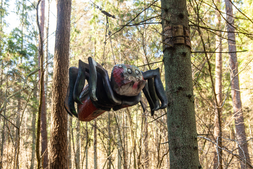 The Fairytale forest is still ruled over by the King of Forest – a ruler with a sword in his hands and a friendly smile on his lips. Here you can see many wooden sculptures – the guard of King of Forest, the court people, the Caller and others. You can also find the hut of Miser and the mushrooms growin on the side of the trail, a house on a chicken’s leg where the Witch of the Woods lives. The forest is also a place where a character named Sumpurnītis lives, the spiders have wowen their webs and owls race with bats on who can fly around the fastest.