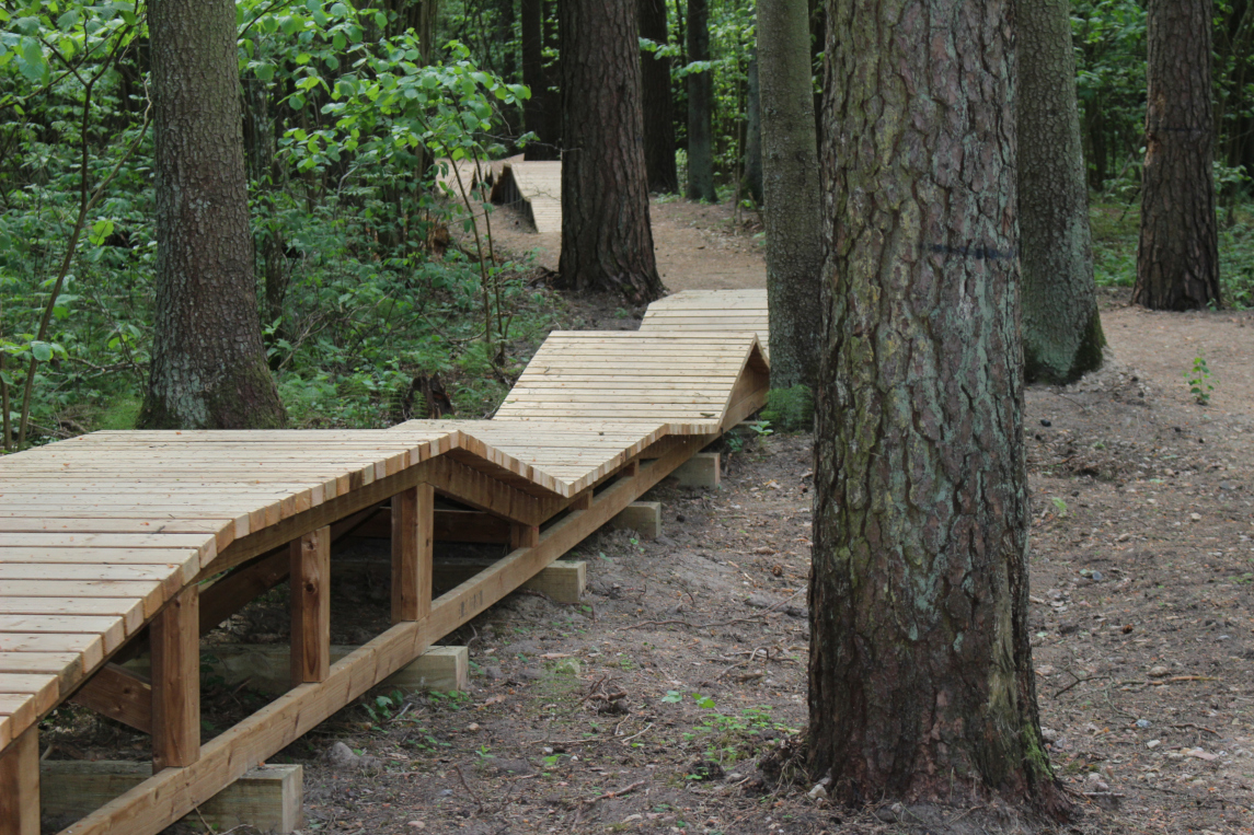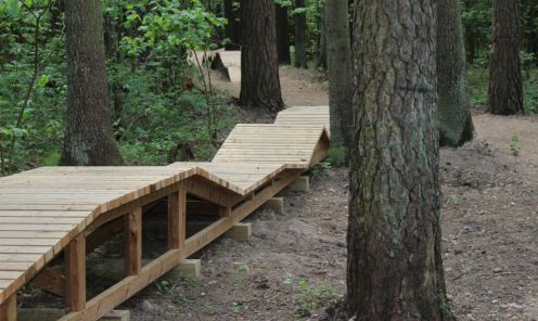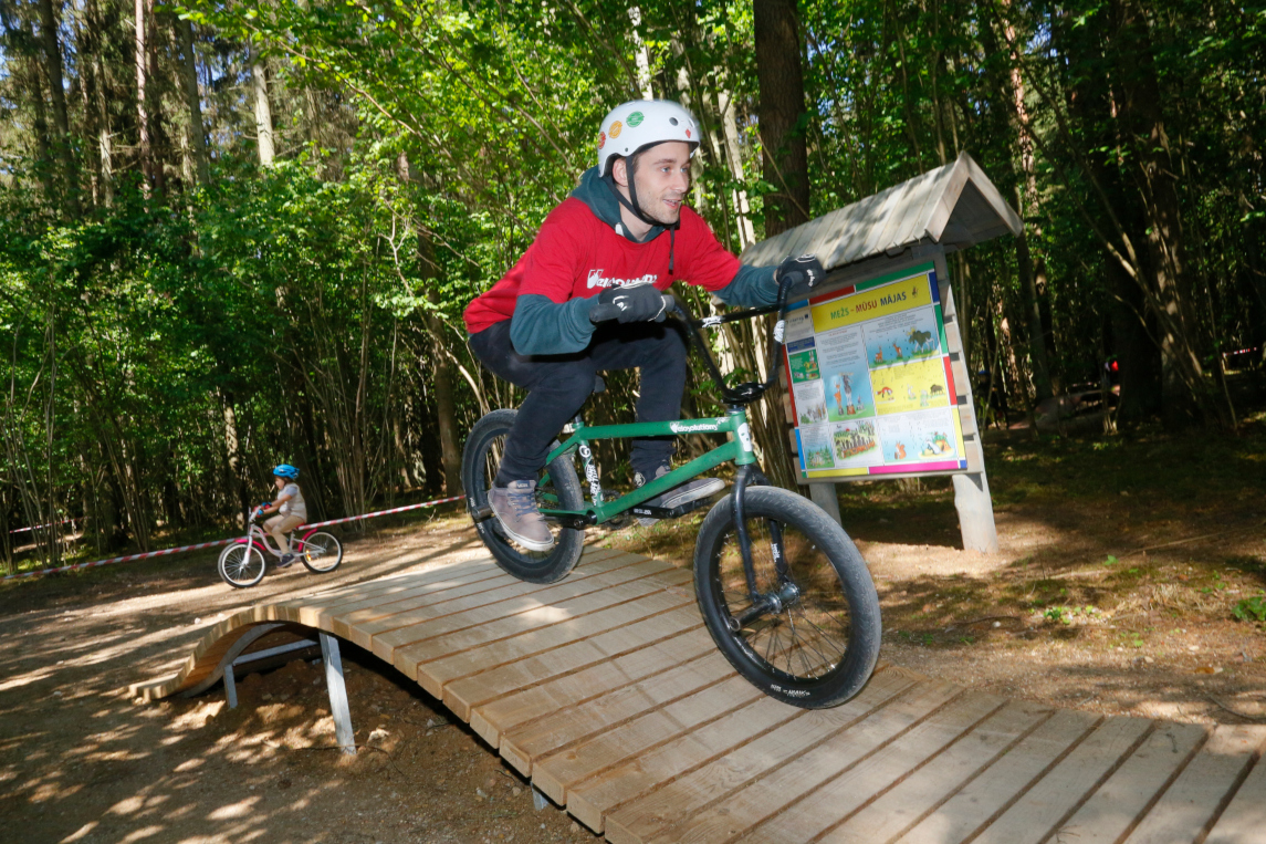 Now the LVM nature park’s in Tērvete World of Sprīdītis has been joined by the Land of Kurbads with its sports activities, forest exploration and adventures. Here you can feel like a true adventurer! Last year this part of the park was opened by the opening ceremony of the Tērvete bicycle park. The bicycle trail is located right across the road to the parking lot. The obstacle course of the trail has been constructed with the rellief in mind, creating various hills, trampolines, turns and bridges at the lengts of almost 3 kilometres. There are also 10 informational stations that let you know about the surrounding wildlife and processes happening in the forest.