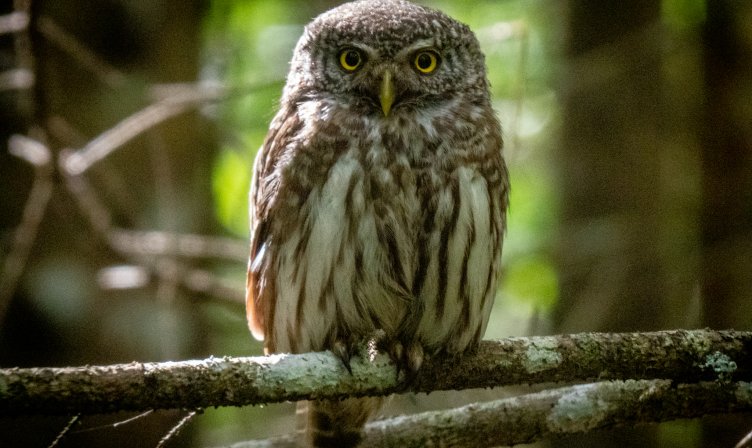 The pygmy owl is a starling-sized bird that nests mainly in hollows carved by great spotted woodpeckers. Pygmy owls inhabit old mixed and coniferous forests that are little affected by human economic activity, especially if aspen with suitable hollows are present. During wintering, they are often found in the immediate proximity of human settlements.