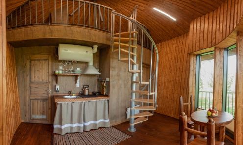 Glempinga mājās ir pieejamas visas ērtības laiskai atpūtai gan vasarā, gan ziemā. Atpūtniekiem pieejami 7 namiņi kokos un 6 pazemes mājiņas, no kurām 2 piemērotas cilvēkiem ar kustību traucējumiem. Māju tehniskās konstrukcijas dēļ mājiņās zem zemes NAV pieejams internets. LVM dabas parka glempings ir paredzēts gan romantiskai atpūtai, gan atpūtai ar ģimeni un draugiem, gan kaislīgiem makšķerniekiem. Šajā ainaviskajā vietā ir padomāts arī par tiem, kam patīk ceļot ar saviem kemperiem vai treileriem.