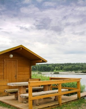 Glempingā ir mājiņas ar tādām ērtībām kā pilsētas mājās.